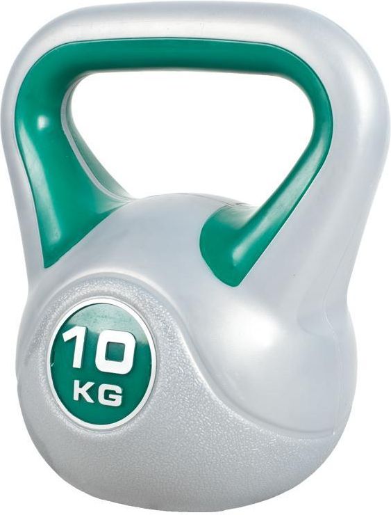 Kettlebell z powłoką winylową 10 kg Specyfikacja Waga: 10 kg Grubość uchwytu: 3,85 cm Powłoka: tworzywo sztuczne Wypełnienie: cement Producent: Gorilla Sports Idealne do treningu siłowego i poprawy równowagi Kettlebell to idealny produkt dla każdego, kto chce pracować nad zwiększeniem siły mięśni. Oprócz tego pomagają również poprawić równowagę i koordynację ruchów. Praca z kettlebell wymusza utrzymanie balansu ciała, co jest zasługą przesuniętego środka ciężkości. Dzięki temu przy treningu pracuje całe ciało! Wygoda używania w domu Nie musisz korzystać z klubu fitness! Kettlebellami bez trudu mogą posłużyć do treningu w domu. Ich powłoka została wykonana z tworzywa sztucznego, które chroni twoją podłogę przed zarysowaniem. Nasze kettle do ćwiczeń zostały wyprofilowane od spodu, aby zminimalizować ryzyko obijania się o podłogę. Dzięki temu rozwiązaniu kettlebell nie turla się po ziemi. Przeznaczenie do treningu crossfit i siłowego Przykładowe ćwiczenia z kettlebell Kettlebell swing – dynamiczne wymachy angażujące nogi, pośladki i plecy Goblet squat – przysiady z kettlebell trzymanym przed klatką piersiową Turkish get-up – kompleksowe ćwiczenie poprawiające mobilność i stabilizację Kettlebell press – wyciskanie nad głowę dla wzmocnienia barków Kettlebell row – wiosłowanie dla mięśni pleców