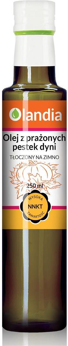 OLEJ Z PRAŻONYCH PESTEK DYNI TŁOCZONY NA ZIMNO 250 ml - OLANDIA SKŁADNIKI olej z prażonych pestek dyni tłoczony na zimno. OPIS Oleje Olandia należą do najwyższej kategorii jakościowej produktów. Olej po wytłoczeniu jest taki sam jak w nasionku. Są tłoczone w niskiej temperaturze bez dodawania innych substancji. Posiada on bogaty orzechowy smak i jest cennym źródłem niezbędnych kwasów tłuszczowych, antyoksydantów i związków blokujących DHT, takich jak beta-sitosterol i delta-7-sterine. Stosować na zimno. Podnosi smak warzyw, szczególnie tych pieczonych lub gotowanych na parze. Jest wartościowym dodatkiem do sałatek i surówek. Nadaje się również do wielu deserów w tym lodów. Wysoka zawartość tłuszczów nienasyconych. Zastępowanie w diecie tłuszczów nasyconych tłuszczami nienasyconymi pomaga w utrzymaniu prawidłowego poziomu cholestreolu we krwi. Jedno i wielonienasycone kwasy tłuszczowe są tłuszczami nienasyconymi. Spożywanie 30 g jedno i wielonienasyconych kwasów tłuszczowych dziennie (około 2 łyżek stołowych) w ramach zrównoważonego sposobu żywienia i aktywnego trybu życia pomoże uzyskać korzystny efekt zdrowotny. 100 ml produktu zawiera 75,44 g kwasów tłuszczowych nienasyconych. WARTOŚĆ ODŻYWCZA w 100 ml Wartość energetyczna: 3404 kJ/828 kcal Tłuszcz: 92 g w tym kwasy tłuszczowe nasycone: 16,6 g kwasy tłuszczowe jednonienasycone: 33,3 g kwasy tłuszczowe wielonienasycone: 42,1 g Węglowodany: 0 g w tym cukry: 0 g Białko: 0 g Sól: 0 g UWAGA Ewentualna zawiesina lub osad na dnie butelki jest zjawiskiem naturalnym. ZALECANE WARUNKI PRZECHOWYWANIA Przechowywać w chłodnym i ciemnym miejscu. Masa netto: 250 Jednostka podstawowa: szt Termin przydatności (liczba dni): 60 Kod CN: 1515 90 59 Producent: OLANDIA (oleje) Kategoria: Oleje, oliwy Waga z opakowaniem: 0 kg