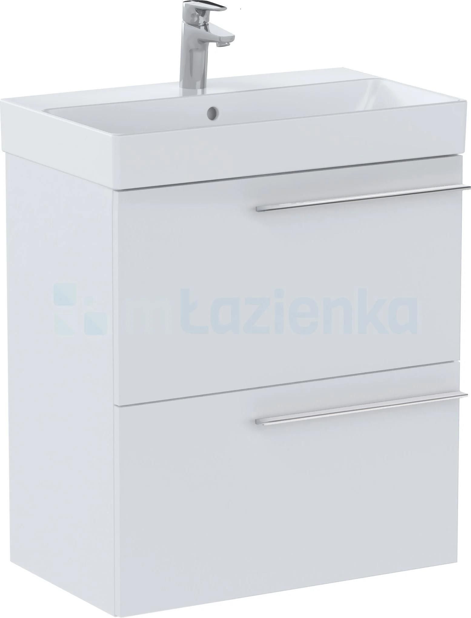 Ella REF: A857778529 Szafka łazienkowa 60 cm z 2 szufladami (do kompletacji z umywalką Ona), wersja compacto Wymiary: 585 x 346 x 635 mm (długość, szerokość, wysokość) 529 - Biały mat Meble do kompletacji z umywalkami Ona o numerach referencyjnych: A327684004 - wykończenie biały połysk, A327684080 …