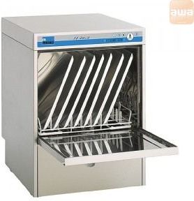 ParametryWysokość - H: 835 mm Głębokość - D: 665 mm Szerokość - W: 565 mm Napięcie - U: 400 V Moc elektryczna: 6.65 kW Długość cyklu pracy: 90/120/180 sek Materiał wykonania: stal nierdzewna Marka: Stalgast Opis produktupolska konstrukcja wykonana ze stali nierdzewnej profesjonalna zmywarka z funkcją wyparzania sterowanie elektroniczne zmywarka przystosowana do mycia talerzy, szkła, tac i pojemników GN 1/1 wyposażona w pompę wspomagającą płukanie jelitkowy dozownik płynu myjącego i nabłyszczającego w standardzie czas trwania cyklu 90, 120 lub 180 sek. wskaźniki temperatury pracy bojlera i komory 2 pary ramion myjąco-płuczących (góra/dół) zużycie wody 2,5 l/cykl max. wysokość mytych naczyń 320 mm kosze 500x500 w komplecie kosz do talerzy, uniwersalny oraz pojemnik na sztućce urządzenie powinno mieć zamontowany uzdatniacz wody w celu ochrony przed osadzaniem się kamienia rekomendowane przez Stalgast profesjonalne płyny do zmywarek zapewniają ich prawidłową pracę używać wody o twardości do 6°dH w skali niemieckiej (twardsza woda powoduje osadzanie kamienia na grzałkach co może spowodować uszkodzenie i utratę gwarancji)