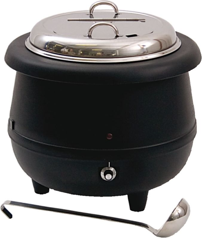 - pojemnik na zupy, pokrywa i pojemnik na wodę wykonane ze stali nierdzewnej - pokrywa z wycięciem na łyżkę - obudowa wykonana z tworzywa wysokoudarowego - grzałka z termostatem - łyżka w komplecie - używać wody o twardości do 6°dH w skali niemieckiej - twardsza woda powoduje osadzanie kamienia w grzałkach co może spowodowac uszkodzenie i utratę gwarancji - w komplecie chochelka o pojemności 0.1l i L- 380mm Parametry techniczne: Wysokość - H 360 mm Średnica 390 mm Napięcie - U 230 V Pojemność - V 10 l Moc elektryczna 0.4 kW Marka Tak