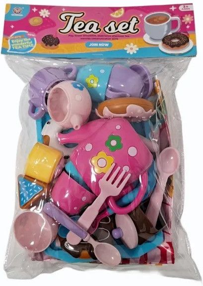 Zestaw naczyń do zabawy w herbatkę. W komplecie filiżanki, dzbanek, cukiernica, mlecznik, łyżeczki, taca, słodycze, mata. Produkt dla dzieci od 3 lat. Całość zapakowana w przezroczysty worek. Podane wymiary są wymiarami produktu w opakowaniu. Wiek: 3+Producent/osoba odpowiedzialna za bezpieczeństwo produktuKUKURYKU Julia PogorzelskaEKONOMICZNA 442-271 CZĘSTOCHOWAoffice@kukuryku.co343401150