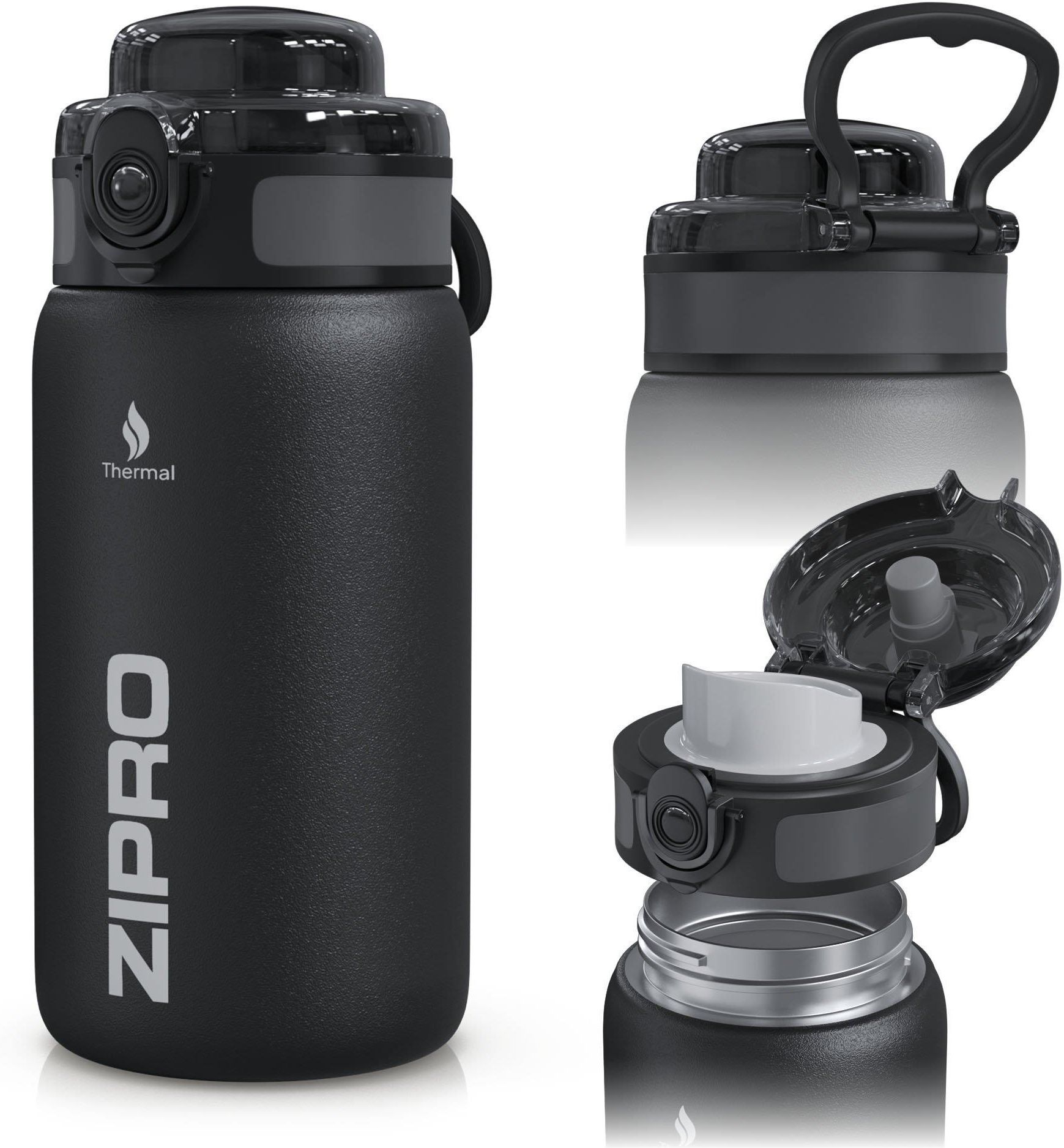 Butelka termiczna ZIPRO - 500 ml czarna Informacje podstawowe: Materiał: stal nierdzewna austenityczna 18/8, polipropylen (PP), guma silikonowa Podwójne ścianki izolacyjne Szczelne zamknięcie z zabezpieczeniem Dziubek do picia Bez BPA Nie nadaje się do mycia w zmywarce Na siłownię, podróż autem, …