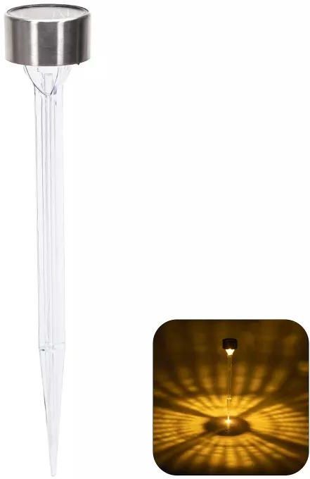 Lampa solarna wbijana w grunt - Dekoracyjne oświetlenie ogrodoweLampa solarna wbijana w grunt to innowacyjne rozwiązanie w dziedzinie oświetlenia solarnego. Tworzy przytulną atmosferę efektem złożonym z okręgu zimnych promieni. Te lampy solarne są ładowane energią słoneczną, dlatego też nie potrzebujesz przewodu, baterii ani świec. Wykonane z wytrzymałego tworzywa i metalu, lampy solarno-ledowe mają wodoodporność IP44, dzięki czemu doskonale nadają się do użytku zewnętrznego. Nasze lampy solarne są przeznaczone do dekoracji ogrodu, trawnika i alejek, oferując eleganckie i ekologiczne oświetlenie.Cechy: Zimna, biała dioda LED, zapewniająca energooszczędne oświetlenie Dekoracja ogrodowa: stwórz wyjątkowe miejsce w ogrodzie, na podwórku, rabatach kwiatowych, uwalniając grę cieni i świateł Lampy solarno-ledowe oświetlą Twój ogród magicznym światłocieniem Łatwy montaż lamp solarnych - można je zainstalować praktycznie wszędzie Doda uroku każdemu spotkaniu na świeżym powietrzu, pozwalając stworzyć wyjątkowy nastrój i zaskoczyć gości Parametry techniczne: Typ baterii/akumulatora: 1.2V, Bateria Ni-MH Kolor produktu: Srebrny Kolor światła: Barwa Ciepła Wielkość panelu solarnego: D55mm Typ panelu solarnego: silikon polikrystaliczny Wymiary: L55 W55 H320 mm Moc panelu solarnego: 0.08W Napięcie panelu solarnego: DC2V Prąd panelu solarnego: 40mA Maksymalna moc: 0.006W Napięcie: DC1.2V Pobór prądu: 5mA Temperatura barwy: 2700K Strumień świetlny: 1.2lm CRI: Ra≥70 Hg%: zero Stopień ochrony: IP44 Środowisko: Na zewnątrz Temperatura działania: -10#8451;~50#8451; Aplikacji z miejsc: Wille, ogrody itp. Pojemność akumulatora: 200mAh Czas świecenia: 8-12h Żywotność: 30000h Materiał wykonania: Stal nierdzewna i plastik Certyfikat: CE, RoHS Długość świecenia lampy solarnej zależy od wielu czynników, m.in. pory roku, zachmurzenia, położenia geograficznego, oraz miejsca jej zainstalowania. Pamiętaj, aby oświetlenie solarne działało efektywnie w nocy, musi w czasie dnia zmagazynować odpowiednią ilość energii. Dlatego zalecamy zainstalować lampy solarno-ledowe w miejscu o największym nasłonecznieniu. Miejsca zacienione nie dadzą możliwości naładowania akumulatora, a co za tym idzie, skrócą czas świecenia w nocy.Nasze lampy solarne to nie tylko praktyczne oświetlenie, ale także dekoracyjne latarnie, które dodadzą uroku każdemu ogrodowi. Dzięki łatwemu montażowi lamp solarnych, możesz stworzyć magiczną atmosferę w swoim ogrodzie bez konieczności skomplikowanej instalacji elektrycznej. Te lampki solarno-ledowe są idealnym rozwiązaniem dla osób poszukujących ekologicznego i stylowego oświetlenia zewnętrznego.
