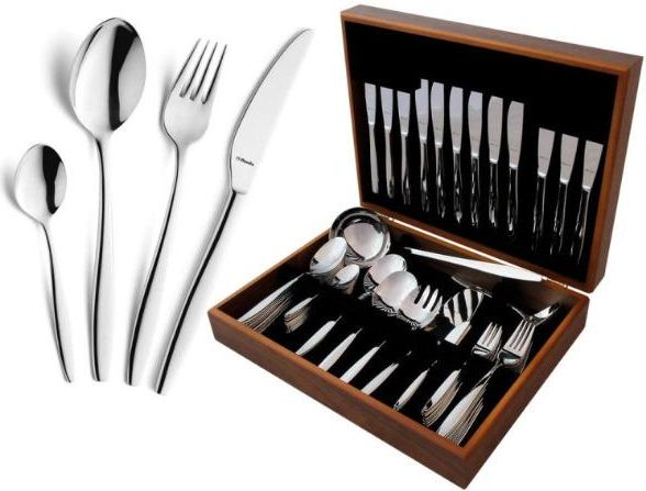 Wykonane z wysokogatunkowej stali nierdzewnej, sztućce cechują się trwałością, odpornością na korozję i wyjątkowym połyskiem, który przyciąga wzrok i podkreśla prestiż nakrycia stołu. Ten rozbudowany komplet obejmuje nie tylko zestaw dla 12 osób, ale również praktyczne elementy do serwowania, dzięki czemu świetnie sprawdzi się na co dzień i podczas rodzinnych uroczystości. Drewniana kaseta o klasycznym wykończeniu nie tylko zabezpiecza sztućce, ale także stanowi stylowy element wyposażenia kuchni lub jadalni. Idealny na prezent ślubny, jubileuszowy lub do użytku domowego na lata. Zalety zestawu Florence 72 el. z połyskiem: -Kompletny zestaw dla 12 osób + akcesoria do serwowania -Wysokiej jakości stal nierdzewna z eleganckim połyskiem -Klasyczne, uniwersalne wzornictwo – pasuje do każdej zastawy -Luksusowa drewniana kaseta – idealna na prezent -Możliwość mycia w zmywarce