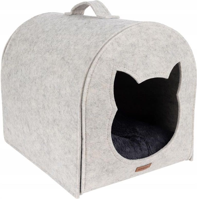 Amiplay Hygge Quick Press 2in1 Domek Dla Kota Beżowy Domek służący do wypoczynku dla kotów. Wykonany z najwyższej jakości materiałów, trwały, odporny na odgniecenia. Możliwość prania poduchy w pralce. Domek Quick Press 2in1 Hygge świetnie sprawdzi się jako miejsce wypoczynku dla kota. Może pełnić rolę budki, do której zwierzę schowa się w poszukiwaniu spokoju. Zabudowane ściany ograniczają ilość stresujących bodźców docierających do kota, dzięki czemu miejsce to stanie się prawdziwą strefą odpoczynku i bezpieczeństwa. Filc, użyty w kolekcji Hygge jest bardzo lekki i elastyczny. Nie gniecie się ani nie odkształca, co gwarantuje, że domek będzie służył psu przez długi czas. Specjalny splot materiału jest odporny na zadrapania. Można go prać ręcznie i jest bardzo łatwy w konserwacji. Unikalny i nietuzinkowy wygląd sprawia, że domek będzie świetnie pasował do każdego wnętrza. W komplecie jest dwustronna poducha. Z jednej strony wykonana z miłego w dotyku polaru, a z drugiej z tkaniny poliestrowej. Pozwala to na dopasowanie wyglądu do indywidualnych upodobań. Domek jest w pełni rozbieralny, co znacząco ułatwia dostęp i przechowywanie. Poduchę można prać w pralce lub ręcznie, dzięki czemu czyszczenie i odświeżenie domku nie sprawia problemu. Seria: Hygge Szerokość zewnętrzna: 42 cm Długość zewnętrzna: 33 cm Wysokość: 36 cm Przeznaczenie:kot Materiał: filc Rozbieralne: wyciągana poducha