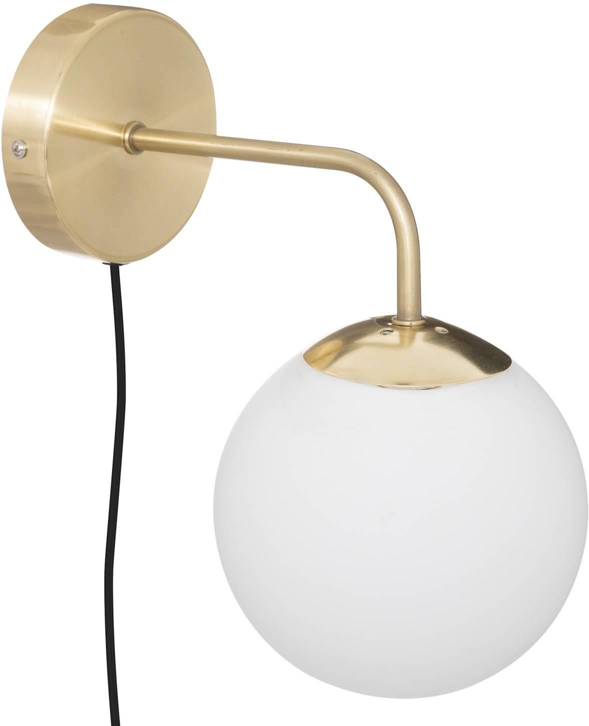 Kinkiet kula szklana, złoty Dris, Ø 15 cm Kinkiet z metalowym stelażem i białą, szklaną kulą - oświetlenie pomieszczenia i ścienna dekoracja w eleganckim wydaniu ✅Producent: Atmosphera ✅Materiał dominujący: szkło długość (cm): 25 wysokość (cm): 30 średnica (cm): 15 Kinkiet z metalowym stelażem i …