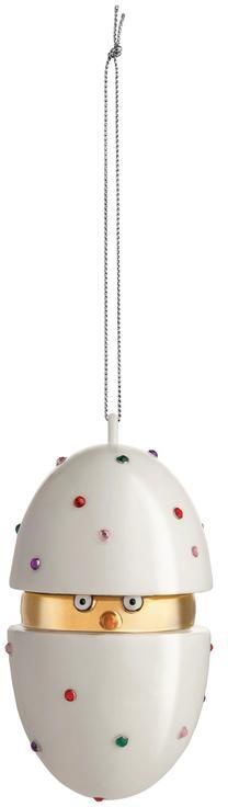 Świąteczna zawieszka FaberJori to projekt, który dla włoskiej marki Alessi stworzył Marcello Jori. Inspiracją dla projektanta były słynne jubilerskie jajka autorstwa Petera Carla Faberge. Dekoracja wykonana z ręcznie zdobionej, emaliowanej porcelany będzie niezwykle piękną i stylową ozdobą na choince czy stroiku. Dekoracja FaberJori to idealna propozycja dla osób poszukujących luksusowych i niepowtarzalnych dodatków świątecznych. Wymiary: średnica 5.6 cm, wysokość 9.5 cm. Wykonanie: porcelana.