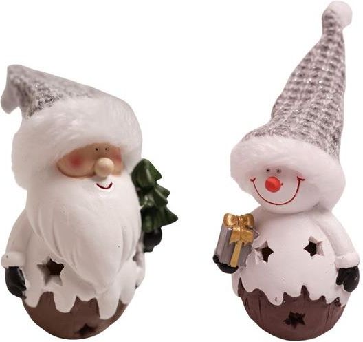 Dekoracje Boże Narodzenie Bałwan Mikołaj Ceramiczny LED z Prezentem i Choinką 18cm Szara Czapa Marki