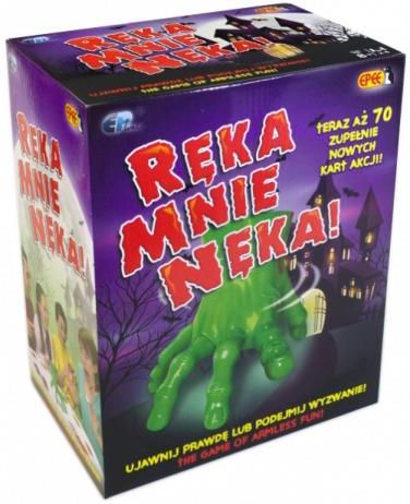 Epee Ręka mnie Nęka Edycja 2018 Kultowa gra Ręka mnie nęka marki Epee w nowej odsłonie. Plastikowa ręka chodzi po okręgu i losowo wskazuje gracza, który musi stawić czoła prawdzie lub odpowiedzieć na wyzwanie. Jeśli przeciwnicy uznają, że gracz nie wykonał poprawnie zadania, musi odbyć karę - karta …