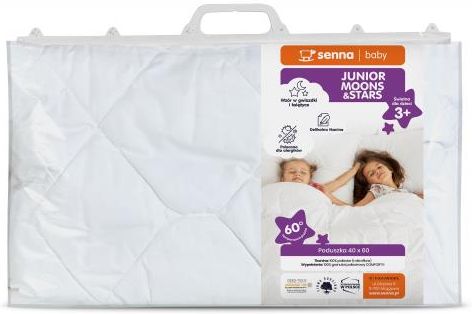 Poduszka 40×60 Junior Baby Senna MOONS & STARS Poduszka została uszyta z bardzo przyjemnego materiału, imitującego brzoskwiniową skórkę. Dzięki miękkiej, ale wytrzymałej, trójwarstwowej pikówce produkt jest bardzo trwały. Uroku dodaje mu delikatny wzór w gwiazdki i księżyce. Miękkie kuleczki, które wypełniają poduszkę, dopasowują się do głowy śpiącego, zapewniając wyśmienity odpoczynek. Produkt zalecany dla alergików. Zalecamy pranie w pralce w temperaturze do 60 stopni C. Rodzaj: Poduszka
