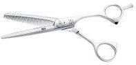 Kasho Green Sasa Ba, degażówki offsetowe, 38 zębów, typ B, ref. KGRS-60 OS/T38B Kasho Green Sasa Ba to profesjonalne degażówki offsetowe, które stanowią niezbędny element wyposażenia każdego salonu fryzjerskiego i kosmetycznego. Dzięki połączeniu innowacyjnej technologii z eleganckim designem, te nożyczki zapewniają wysoką jakość oraz komfort pracy, co jest kluczowe dla fryzjerów i stylistów. Umożliwiają one precyzyjne wykonanie usług oraz dbanie o zadowolenie klientów. Typ sprzętu Degażówki offsetowe, takie jak model Kasho Green Sasa Ba, to narzędzie, które przyciąga uwagę profesjonalistów. Główne zadanie degażówek to stopniowe przerzedzanie włosów oraz nadawanie im odpowiedniej tekstury. Warto zwrócić uwagę na różne typy nożyczek, które mogą spełniać różne funkcje, takie jak: degażówki offsetowe, zapewniające wygodną pozycję nadgarstka i łatwość w manipulowaniu narzędziem, nożyczki klasyczne, idealne do prostych cięć i precyzyjnych detali, nożyczki z mikro-ząbkami, służące do bardziej skomplikowanych technik strzyżenia, degażówki z różnymi typami ostrzy, pozwalające na dostosowanie cięcia do indywidualnych potrzeb klientów. Wszystkie te narzędzia w salonie fryzjerskim mają swoje specyficzne zastosowanie, a ich wybór powinien być przemyślany, aby zaspokoić oczekiwania zarówno stylistów, jak i klientów. Materiał wykonania Materiały, z których wykonany jest sprzęt fryzjerski, mają kluczowe znaczenie dla jego trwałości i estetyki. Degażówki Kasho Green Sasa Ba są wykonane z najwyższej jakości stali, co zapewnia im wyjątkową ostrość oraz odporność na uszkodzenia. Dodatkowo, wypukłe ostrza mają wykończenie na wysoki połysk, co nadaje im elegancki i profesjonalny wygląd. Wykorzystanie technologii ukształtowania oraz wytrawiania ząbków sprawia, że każdy ząbek styka się z krawędzią tnącą pod tym samym kątem, co wpływa na efektywność cięcia. Wymiary Pod względem wymiarów, degażówki mają długość 6 cali, co czyni je doskonałym narzędziem do precyzyjnych działań. Wysokość, szerokość i głębokość narzędzia są optymalnie dopasowane do potrzeb fryzjerów, co pozwala na swobodne i komfortowe cięcie, niezależnie od stylu pracy. Regulacja Jedną z największych zalet degażówek offsetowych Kasho jest ich regulacja. Wyposażone w system regulacji docisku ze zintegrowanym łożyskiem kulkowym, minimalizują napięcie nadgarstka podczas cięcia. Dzięki temu fryzjerzy mogą pracować dłużej, nie odczuwając zmęczenia. Dodatkowo, pół-offsetowa konstrukcja pozwala na lepsze dopasowanie narzędzia do dłoni, co zapewnia lepszą kontrolę nad cięciem. Zastosowanie i wyrób medyczny Degażówki offsetowe, takie jak Kasho Green Sasa Ba, idealnie nadają się do stopniowego przerzedzania włosów, co jest szczególnie przydatne w stylizacji na różnych poziomach długości. Dzięki temu można uzyskać efekt naturalnego przejścia, co jest niezwykle pożądane w pracy fryzjera. Produkt ten jest przeznaczony do użytku profesjonalnego, co podkreśla jego jakość oraz zastosowanie w branży fryzjerskiej. Warto również zaznaczyć, że degażówki te są wyrobem medycznym, co dodatkowo podkreśla ich bezpieczeństwo i wysoką jakość. Funkcje dodatkowe i poziom hałasu Degażówki offsetowe są zaprojektowane z myślą o komforcie pracy, co może być istotne dla profesjonalistów. Warto również zwrócić uwagę na poziom hałasu generowanego przez narzędzie. W przypadku degażówek minimalizują hałas, jednak komfort pracy jest kluczowy. Użycie narzędzi, które minimalizują hałas w salonie, wpływa na ogólne wrażenia klientów oraz atmosferę podczas usług. Zalety degażówek offsetowych obejmują: wysoką jakość materiałów, ergonomiczną konstrukcję, precyzyjne cięcie, minimalizację napięcia nadgarstka, estetyczny wygląd, przeznaczenie do użytku profesjonalnego. Degażówki offsetowe, takie jak model Kasho Green Sasa Ba, to doskonały wybór dla profesjonalistów w branży fryzjerskiej, którzy cenią sobie jakość, precyzję oraz wyjątkowy komfort pracy.