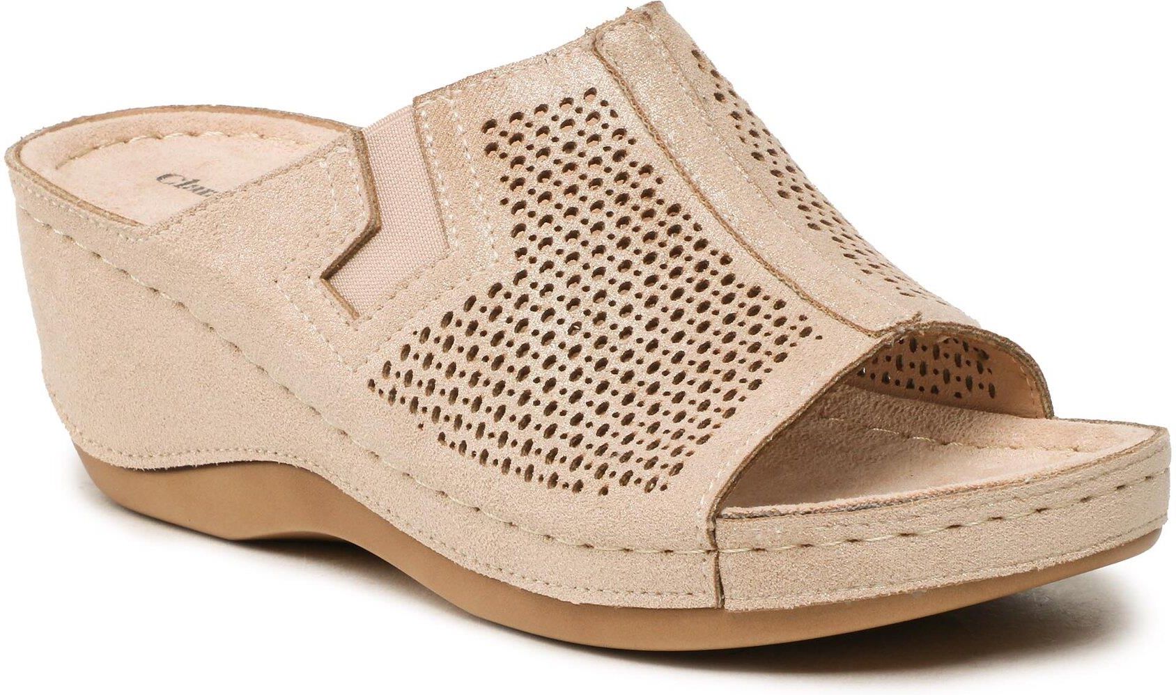 Klapki Clara Barson to idealne uzupełnienie letnich stylizacji każdej kobiety. Ich złoty kolor pięknie mieni się na słońcu, przyciągając uwagę innych. Buty są bardzo wygodne, ponieważ nie posiadają żadnych zapięć, co pozwala na szybkie i łatwe zakładanie. Klapki zostały wykonane z wysokiej jakości materiału włókienniczego, co przekłada się na ich trwałość i wytrzymałość.