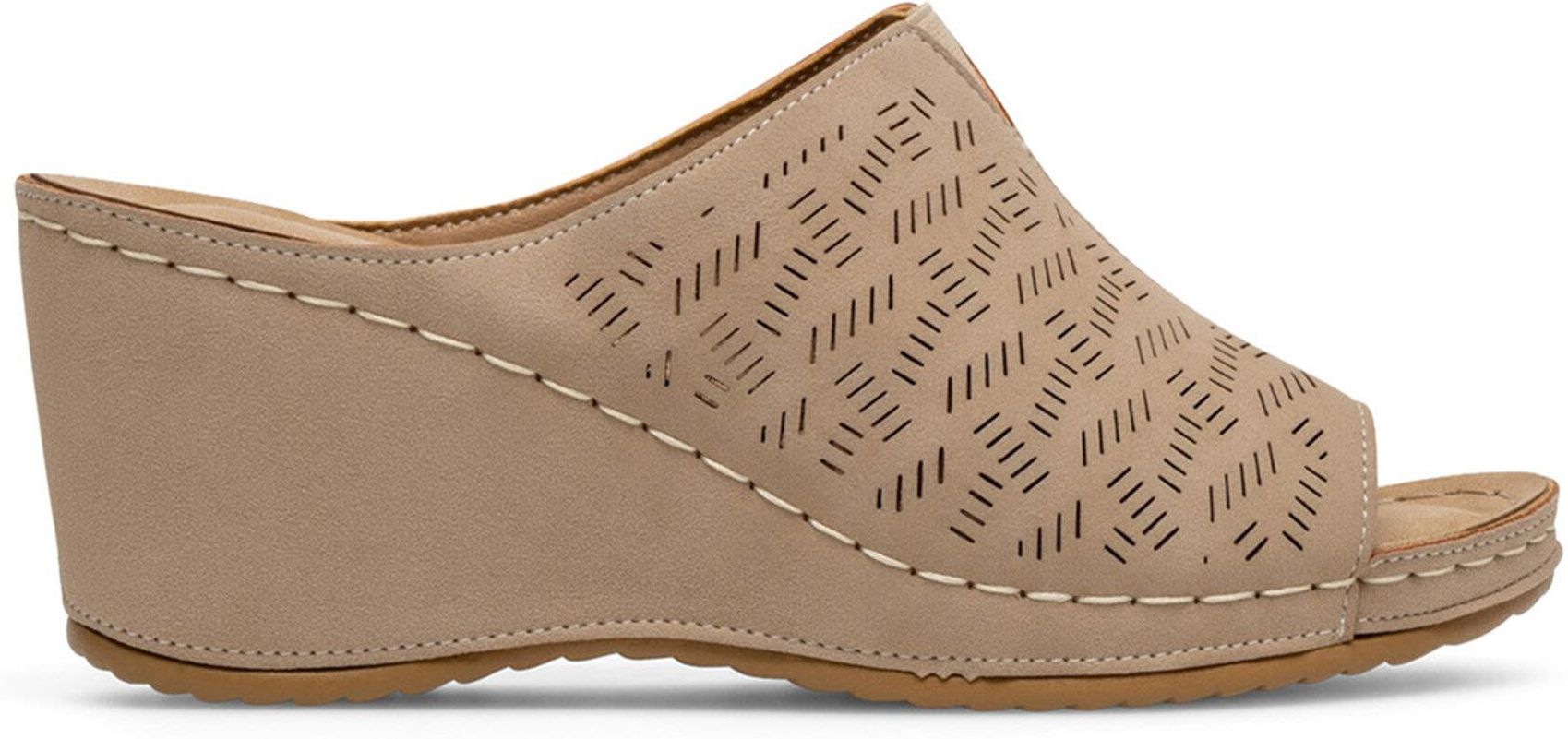 Odkryj wygodę i styl z klapkami Clara Barson! Te casualowe buty to idealny wybór dla kobiety ceniącej sobie komfort i modny wygląd. Beżowy kolor sprawia, że są niezwykle uniwersalne - dopasują się do wielu kolorów i stylizacji. Klapki wykonane z syntetycznego materiału to gwarancja trwałości. Obcas w formie koturna zapewni stabilność i delikatne uniesienie, dzięki czemu Twoja sylwetka zyska na atrakcyjności, a Ty na pewności kroku. Wybierz klapki Clara Barson i ciesz się latem w każdym calu! Clara Barson to polska marka, która w każdym sezonie proponuje wygodne i stylowe obuwie damskie, w klasycznych fasonach, które są wzbogacone o nowości ze świata trendów. Marka Clara Barson prezentuje w swojej ofercie przede wszystkim buty, które doskonale dopasowują się do codziennych stylizacji, ale mogą być też perełkami w zestawach na okazje czy wyjątkowe uroczystości. Cechami wyróżniającymi są subtelne fasony i stabilna konstrukcja, które gwarantują przyjemność oraz komfort noszenia. Stonowane kolory, gustowne wykończenie i delikatne dodatki sprawiają, że buty marki Clara Barson chętnie trafiają do damskiej garderoby.