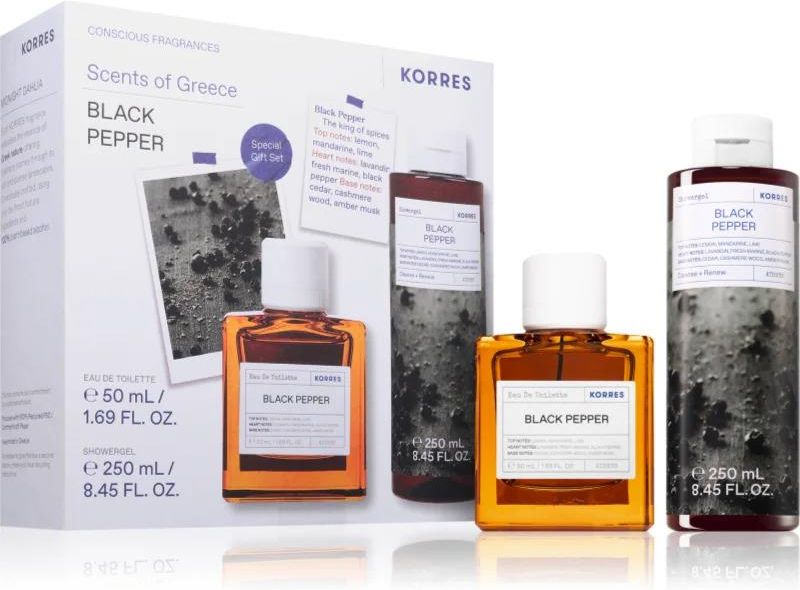 Korres Black Pepper, , Zestawy do ciała dla mężczyzn dla mężczyzn, Luksusowy zapach to zawsze właściwy wybór dla tych, którzy pragną podarować prawdziwe szczęście, a zestaw perfum męskich Korres Black Pepper w pięknym opakowaniu to radość ukryta w wielu flakonikach. Postaw na czar idealnie …