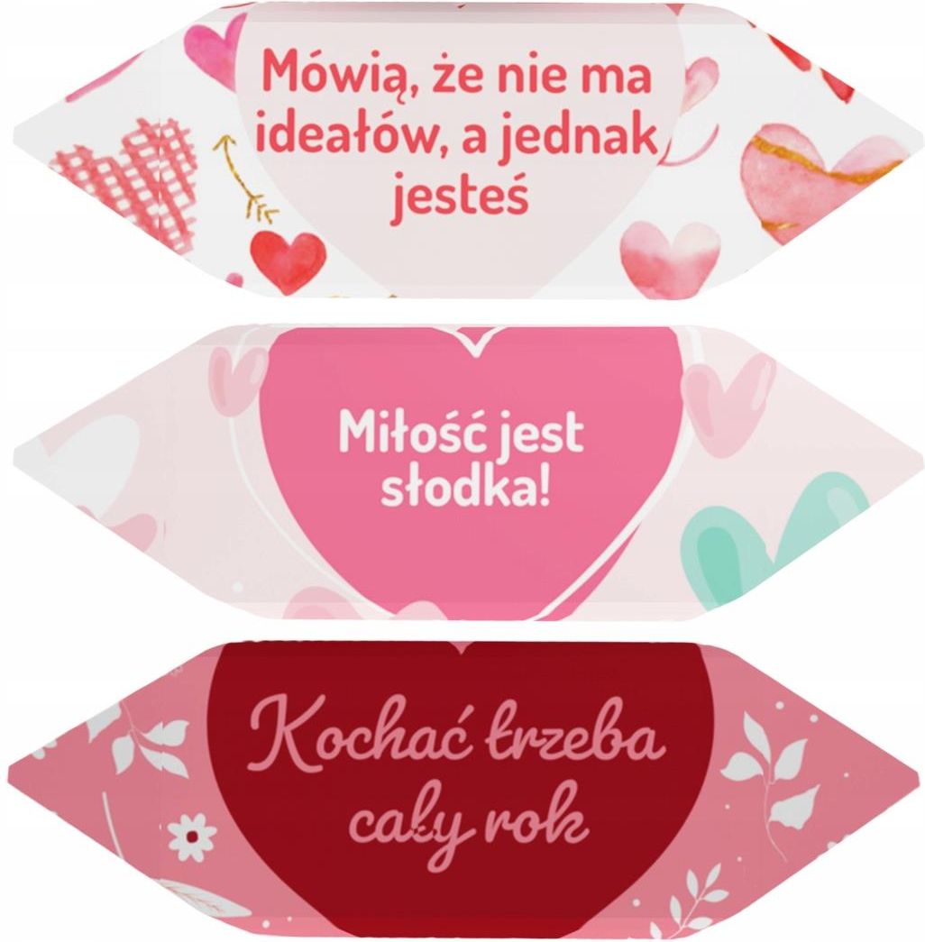 Słodki sposób na wyznanie uczuć! Szukasz wyjątkowego prezentu na Walentynki? Podaruj ręcznie robione krówki o smaku mlecznym, które rozpływają się w ustach i w sercu! Dlaczego nasze krówki? staropolskie receptury, ręcznie pakowane Idealne na prezent – piękne, walentynkowe opakowanie Miłość w każdym kęsie – słodka niespodzianka dla ukochanej osoby Podaruj swoim bliskim chwilę słodyczy i spraw, by Walentynki były jeszcze bardziej magiczne! Zamów już dziś i pokaż, jak smakuje miłość! mix etykiet Walentynkowych w trzech grafikach (jak na zdjęciu, brak personalizacji) na każdej krówce znajduję się niezwykła sentencja wyprodukowane w Milanówku cukierek dodatkowo zapakowany w papier spożywczy waga: 1 kg ilość sztuk w kg: ok. 80 szt. (+/- 2szt.) termin przydatności: 4 miesiące wymiary etykiety: 68x73 mm Mix sentencji (nadruk na zewnętrznej stronie etykietki): Kocham Cię bardziej niż czekoladę! Kocham Cię zaŻarcie! Jesteś słodszy/sza niż krówka ciągutka! Na górze róże, na dole fiołki, chcę robić z tobą w łóżku... (z tyłu krówki) fikołki. Miłość jest słodka! Jesteś moim światem! Na krówkę i miłość z Tobą zawsze mam czas. Kochać trzeba cały rok. Szaleję za Tobą tak samo jak szaleje inflacja. Jesteś bliżej mego serca niż lewe płuco. All you need is... (z tyłu krówki) ME Mówią, że nie ma ideałów, a jednak jesteś. Składniki: cukier, mleko pełne w proszku, syrop glukozowy, tłuszcz cukierniczy, aromat waniliowy. Wyrób może zawierać śladowe ilości orzechów, sezamu, glutenu.