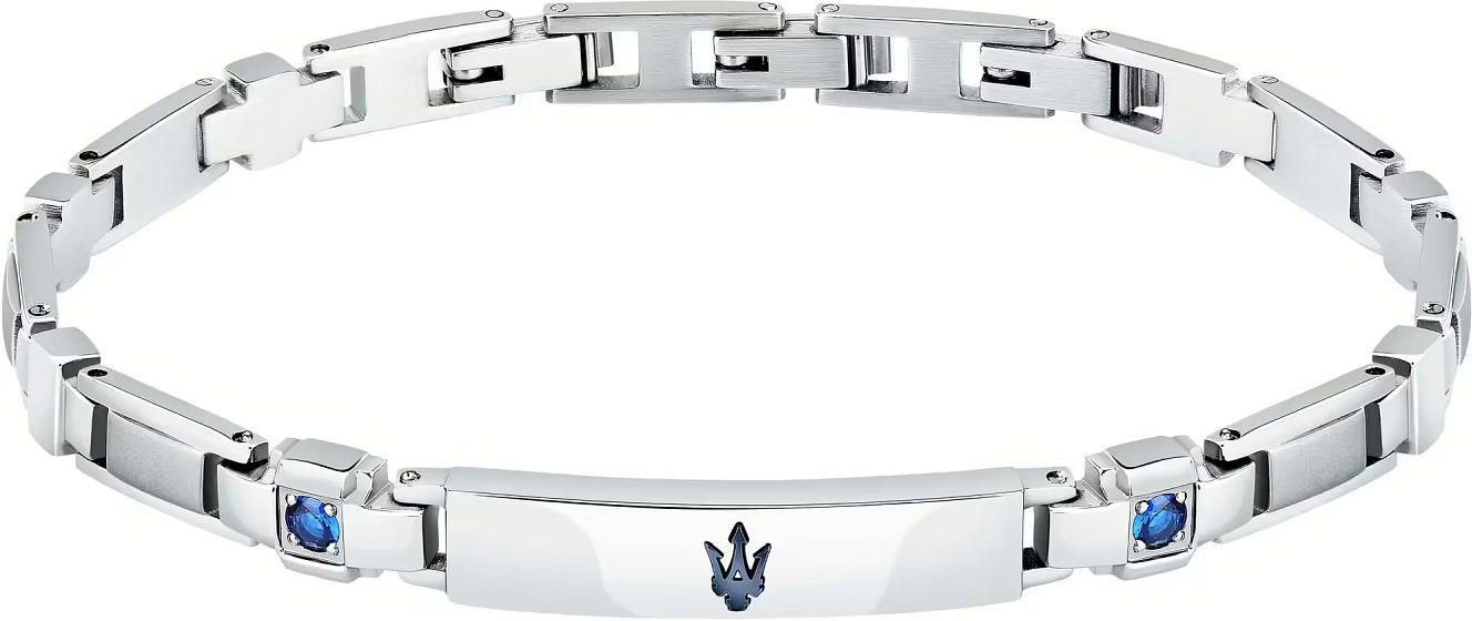 Bransoletka męska Maserati Sapphire JM224AXO02 to stylowy i elegancki dodatek do codziennej stylizacji. Wykonano ją ze stali szlachetnej w srebrnym odcieniu i ozdobiono szafirowymi elementami z kryształu górskiego. Jej design to idealne połączenie klasyki i nowoczesności, które podkreśli Twoje wyczucie stylu.