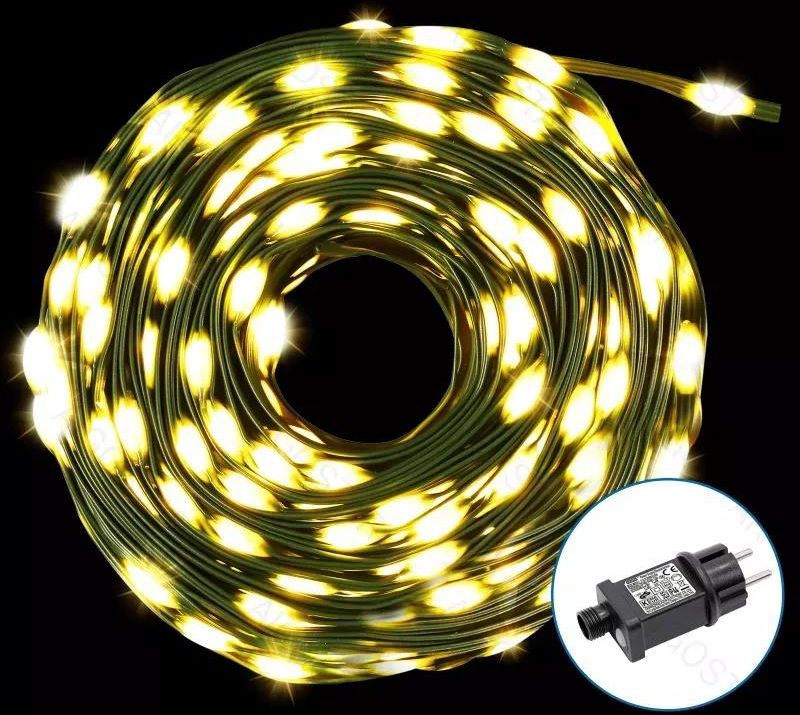 Zdjęcie Niskonapięciowe lampki choinkowe 300 led taśmowe Ciepła biel, 30 m Niskonapięciowa taśma świetlna PVC i miedź, Ciepła biel, 30 m - Marki