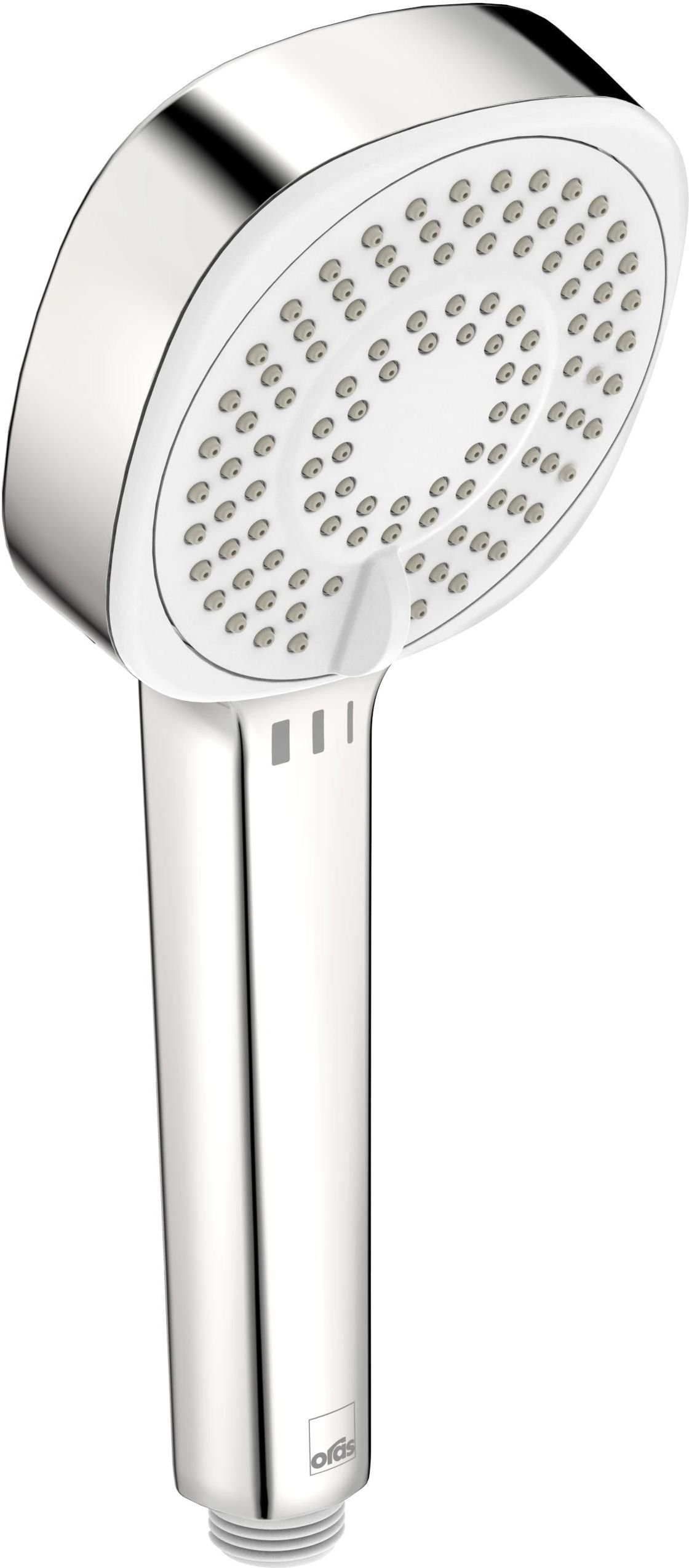 ORAS APOLLO STYLE rączka natrysku, chrom Gwarancja Producent udziela 2-letniej gwarancji na produkt. Główne cechy: - kolor: chrom - 3 rodzaje strumienia: Normalny, Odświeżający i Relaks - kontrola przepływu Eco - system zapobiegający osadzaniu się kamienia Dane techniczne: - przyłącze: G1/2 - średnica rączki: 96 mm