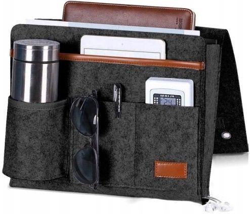 Praktyczny filcowy organizer do auta lub mieszkania Zabierz go wszędzie gdzie zechcesz. Niezastąpiony w każdym pomieszczeniu. Klasyczne wzornictwo sprawia, że nie jest to jedynie dodatek piękny ale również bardzo użytkowy! Cechy produktu: - Posiada: kieszonkę na kubek termiczny bądź butelkę z napojem, dwie duże przegródki na dokumenty oraz dwie mniejsze np. na telefon - Pomieści: tablet, telefon lub dokumenty - Posiada rzepy mocujące oraz 2 napy, dzięki czemu można zawiesić go na poręczy fotela w mieszkaniu lub samochodzie Wymiary: Szerokość - 32 cm Wysokość - 29 cm (56 cm po rozłożeniu na płasko) Materiał: 100 % filc