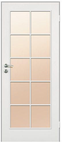 KONSTRUKCJA SKRZYDŁA system przylgowy lub system bezprzylgowy DUO ramiak drewniany obłożony dwiema gładkimi płytami HDF pokrytymi powierzchnią malowaną ekologicznymi farbami akrylowymi z palet RAL lub NCS SZKLENIE szkło biały mat lub przezierne o grubości 4 mm szprosy drewniane WYPOSAŻENIE STANDARDOWE zamek jednopunktowy (sys. przylgowy) lub magnetyczny (sys. bezprzylgowy) wpuszczany, na klucz, na wkładkę lub do blokady łazienkowej zawiasy: typ B – do ościeżnicy system DIN, typ D – do ościeżnicy drewnianej lub MDF, typ M – do ościeżnicy metalowej lub kryty DUO chrom satyna („60”-„80” – 2 szt., „90” – 3 szt.) WYMIARY SKRZYDEŁ jednoskrzydłowe: „60”; „70”; „80”; „90” - opcja za dopłatą: „100” dwuskrzydłowe: „60”+„60”; „60”+„70”; „60”+„80”; „60”+„90”; „70”+„70”; „70”+„80”; „70”+„90”; „80”+„80”; „80”+„90”; „90”+„90”