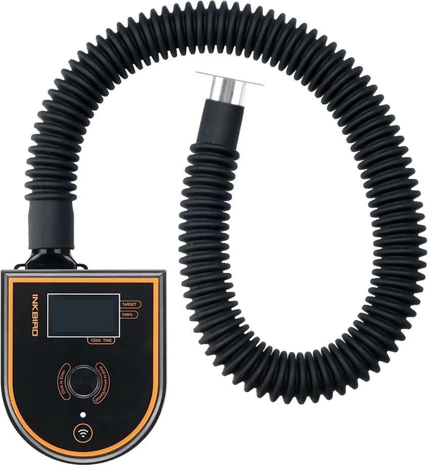 Regulator temperatury grilla ISC-007BW marki Inkbird przeznaczony jest do utrzymywania stabilnej, pożądanej temperatury w grillu podczas długich okresów grillowania, podczas trudnych warunków pogodowych, podczas otwierania pokrywy itp. Regulator może być również używany jako termometr do mięsa. Regulator jest dostarczany z 3 sondami: 2 do żywności, 1 do temperatury otoczenia. Urządzenie pasuje do wszystkich modeli BONO i większości grilli typu kamado (innych producentów). Kontroler działa z aplikacją Inkbird PRO lub bez niej. Konstrukcja z jednym przyciskiem do obsługi wszystkich elementów sterujących temperaturą ułatwia obsługę i zwiększa wydajność. Regulator może być kontrolowany przez Wi-Fi (2,4 GHz) lub połączenie Bluetooth za pośrednictwem bezpłatnej aplikacji. Można w każdej chwili monitorować, ustawiać i/lub regulować temperaturę na smartfonie. Prędkość wentylatora jest regulowana i będzie automatycznie dostosowywana w oparciu o zmiany temperatury. Jest bardziej stabilna i precyzyjna w kontroli temperatury. Regulator bsługuje alarmy dla ustawionych wysokich temperatur, gdy wykryta temperatura osiągnie ustawioną temperaturę uruchomi się alarm i zostanie wysłane powiadomienie na smartfon.