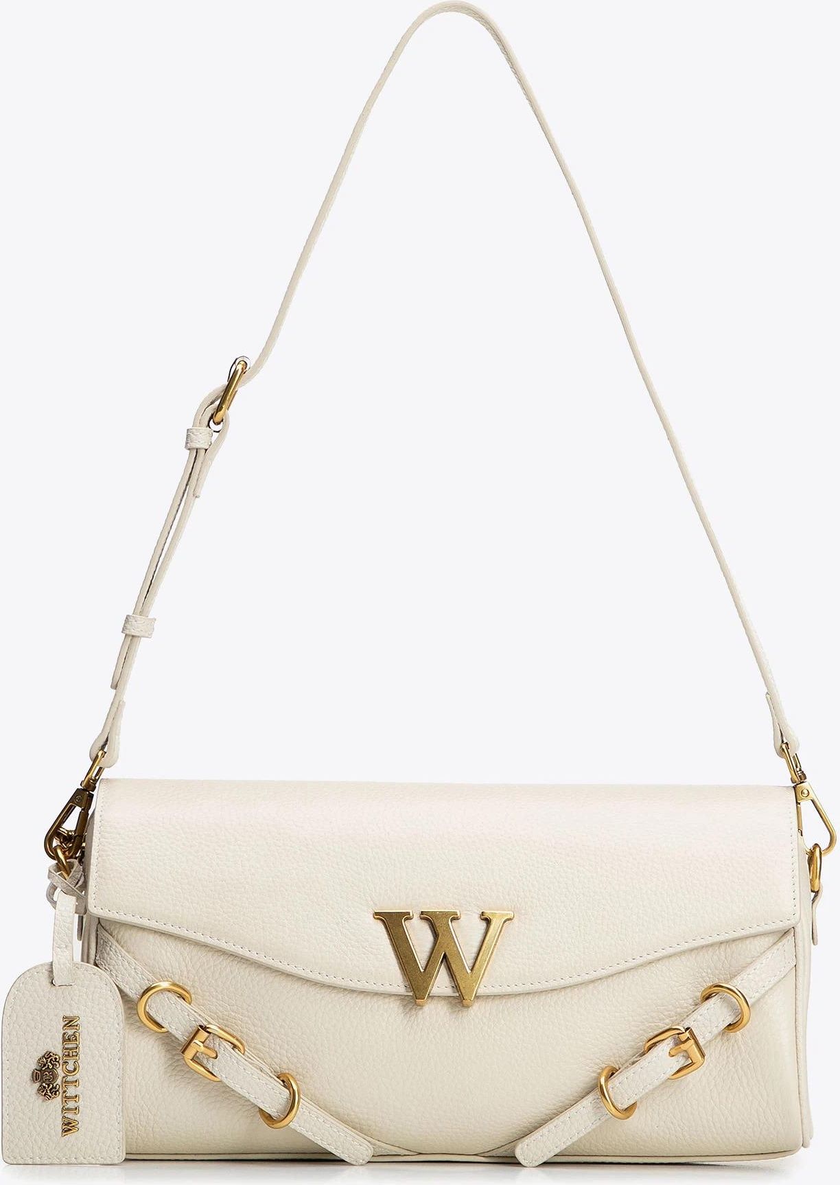 Torebka bagietka ze skóry naturalnej z ozdobnymi paskami kremowa Marki
