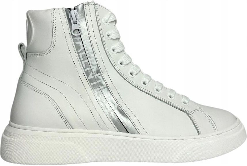 Valentino by Mario Valentino Białe damskie sneakersy HIGH-TOP, marki VALENTINO. Wszystkie produkty z oferty OUTFIT-butik są oryginalne i pochodzą bezpośrednio od producentów lub sprawdzonych dystrybutorów. JAKOŚĆ PREMIUM Wszystkie oferowane przez nas produkty są w 100% oryginalne i pochodzą bezpośrednio od najlepszych producentów. Jako ich wieloletni i rzetelny partner posiadamy autoryzację na sprzedaż asortymentu marek premium na terenie Polski i poza jej granicami. Nasza oferta obejmuje najnowsze dostępne na rynku kolekcje, które wybieramy osobiście z myślą o oczekiwaniach najbardziej wymagających klientów, oraz końcówki kolekcji, które dostępne są po bardzo atrakcyjnych cenach.