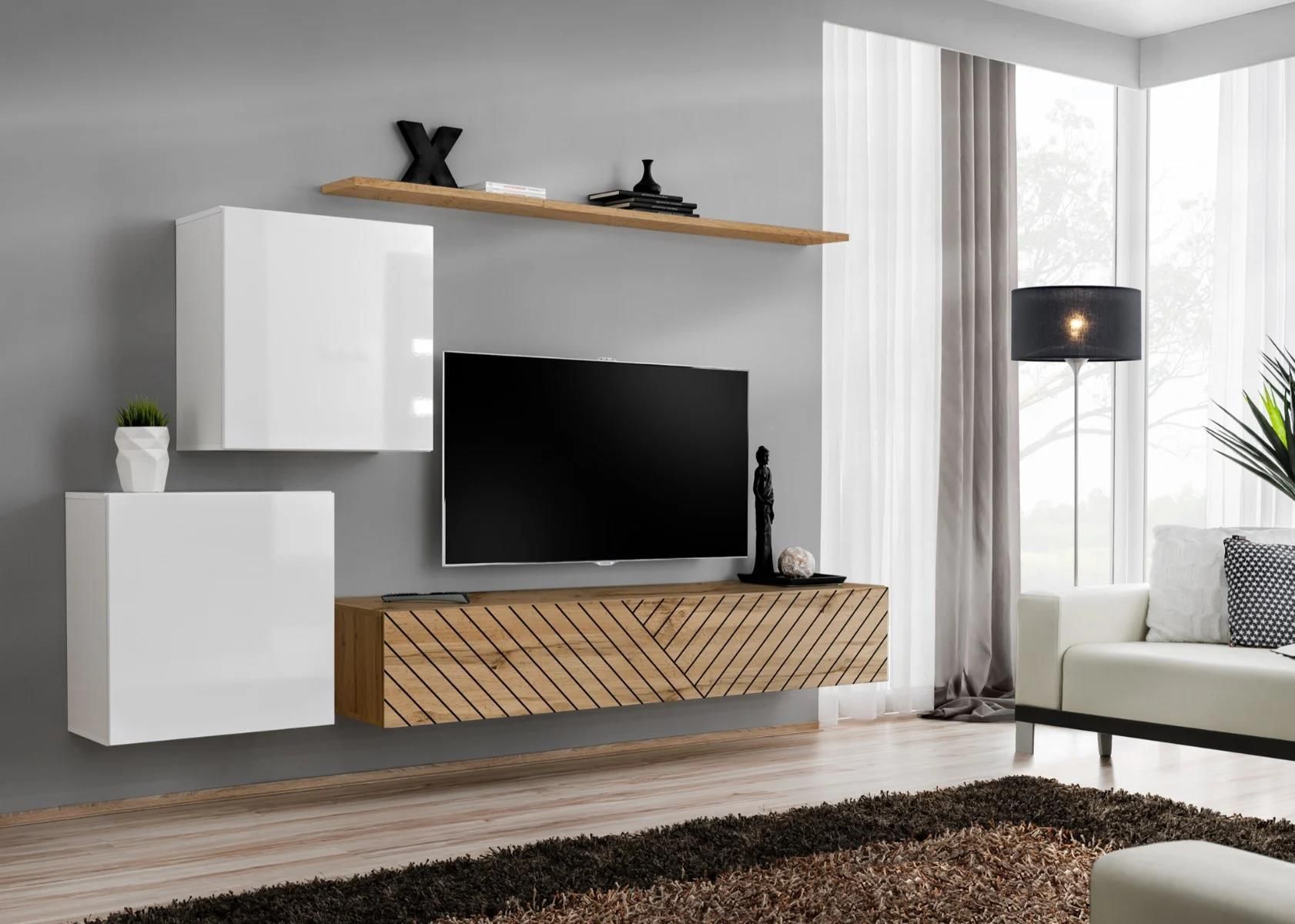 Asm Meble Meblościanka Switch Lamel V Biała/Dąb Wotan Maszewo