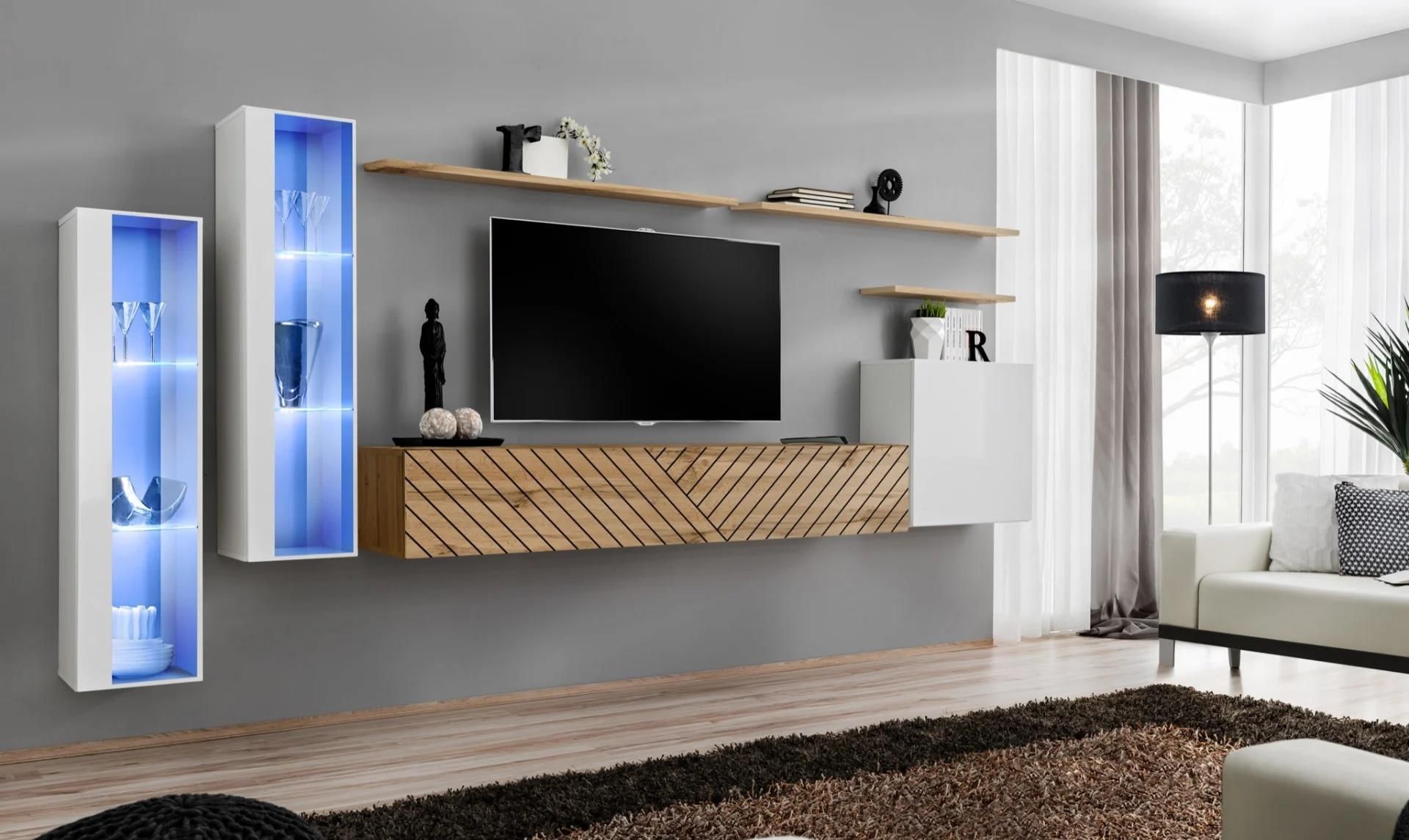 Asm Meble Meblościanka Switch Lamel Xi Biała/Dąb Wotan Maszewo