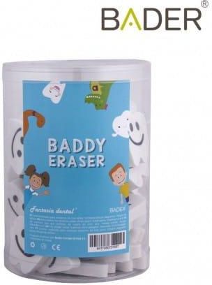 Gumka BaddyOpakowanie zawiera 50 płaskich gumek. Idealny prezent dla mniejszych pacjentów, odpowiedni do użytku szkolnego. Wykonany z gumy syntetycznej.Nadają się do ścierania ołówków grafitowych na wszelkiego rodzaju papierach. Miękki, nieścierny materiał.Jeden model o uśmiechniętym kształcie zęba.Kolor: biały.Nie zalecane dla dzieci poniżej 3 roku życia.