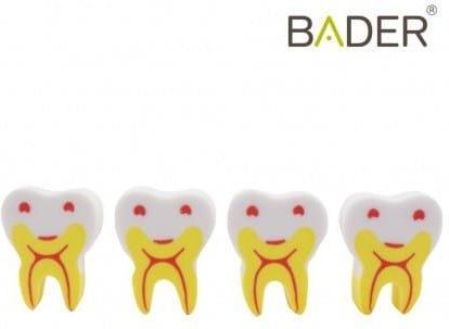 Gumka do mazania BaderOpakowanie 60 sztuk.Zabawne gumki w kształcie uśmiechniętych zębów z dwustronnym wzorem.Oryginalny prezent, którym możesz podzielić się z pacjentami Twojej kliniki.Kolor gumy: żółty i biały.Materiał: wysokiej jakości plastik.Rozmiar każdej gumy: 2cm x 3cm