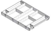 Wkład z przegródkami BLUM Orga-Line do szerokości korpusu 800 mm i głębokości prowadnicy 500 mm Do tego wkładu idealnie pasują obcinarka do folii spożywczej ZSZ.01F0, obcinarka do folii aluminiowej ZSZ.02F0 oraz uchwyt na noże ZSZ.02M0. - wkłady z pojemnikami są wyjątkowo praktycznym rozwiązaniem do kuchni - szczególnie odpowiednie do sztućców - do szuflad standardowych i szuflad wewnętrznych - dostępne w każdej długości prowadnicy od 450 do 650 mm (inne wymiary niż 500 mm na zamówienie - wyślij zapytanie) - wyjmowane pojemniki - odpowiednie do mycia w zmywarce - mogą być o uzupełnione o obcinarki do folii lub wkład na noże