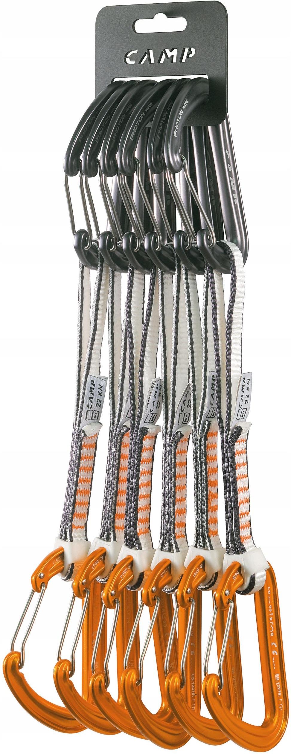 Camp Ekspresy wspinaczkowe Camp Photon Wire KS Dynema 18 cm 6-pack Ekspresy wspinaczkowe Camp Photon Wire KS Dynema 18 cm 6-pack pozwolą Ci w pełni cieszyć się każdą chwilą w ścianie. Dzięki nim zachowasz maksymalne bezpieczeństwo podczas wspinaczki, a ich niska waga nie zwiększy znacząco ciężaru przenoszonego przez Ciebie wyposażenia. Ekspresy wspinaczkowe Camp Photon Wire KS Dynema 18 cm 6-pack doskonale sprawdzą się zarówno wśród początkujących jak i najbardziej zaawansowanych wspinaczy. Ich wysoka jakość wykonania z pewnością zadowoli najbardziej wymagających użytkowników. Ekspresy wspinaczkowe Camp Photon Wire KS Dynema 18 cm 6-pack to 6 sztuk ekspresów doskonale nadających się do wspinaczki sportowej. Wyposażone zostały one w karabinki Photon Wire, cechujące się nie tylko wysoką wytrzymałością, ale także niską wagą. Klasyczne wymiary zastosowanych karabinków, sprawiają, że ekspresy idealnie leżą w dłoni. Optymalizacja kształtu oraz dbałość o ergonomię pozwalają na łatwe manipulowanie całym ekspresem. Zestaw Camp Photon Wire KS Dynema 18 cm 6-pack – najważniejsze cechy Zestaw, który doskonale spisze się wśród wspinaczy na każdym poziomie zaawansowania; Idealnie sprawdzą się podczas wspinaczki sportowej; Karabinki Photon Wire wyposażone w druciane zamki; Zamki odporne na zamarzanie ora zabrudzenia; Długość taśmy: 18 cm; Zestaw składa się z 6 sztuk ekspresów; Certyfikacja: CE; EN 12275; EN 566.