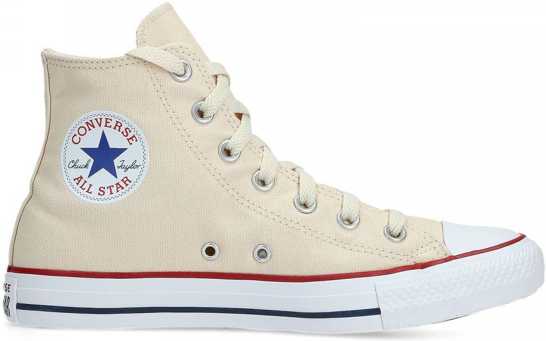Wysokie trampki marki Converse dla kobiet. Te buty damskie w kolorze beżowym będą doskonałym uzupełnieniem stylizacji na co dzień. Beżowe damskie trampki Converse Chuck Taylor All Star - szczegółowe cechy: cholewka nad kostkę wykonana z mocnej, bawełnianej tkaniny klasyczna naszywka z gwiazdą na kostce klasyczne wiązanie za pomocą wytrzymałych, bawełnianych sznurowadeł wzmocniony nosek wytrzymała podeszwa gumowe logo Chuck 70 na pięcie