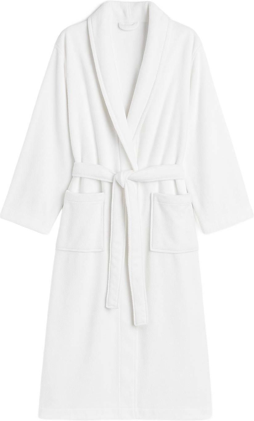 Biały szlafrok hotelowy unisex w rozmiarze XXL, wykonany w 100% z wysokogatunkowej bawełny. Puszysty, miękki i bardzo przyjemny w dotyku. Idealny dla kobiet i mężczyzn. Wytrzymały, elegancki i chłonny – doskonały do domu, spa, h
