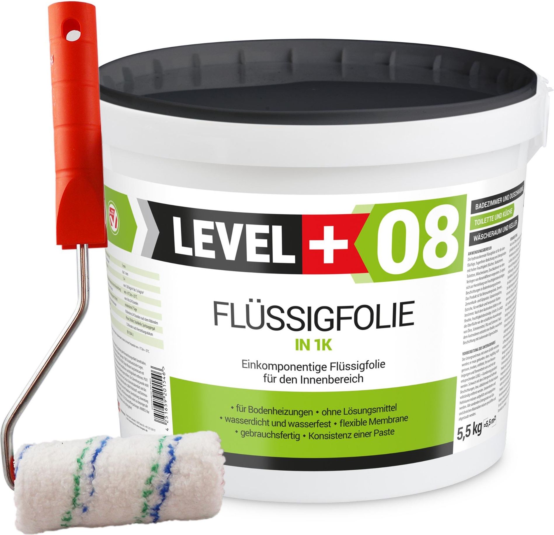 Folia w płynie Level+ FLÜSSIGFOLIE IN L+08 5,5kg + Wałek Malarski 10cm Maszewo