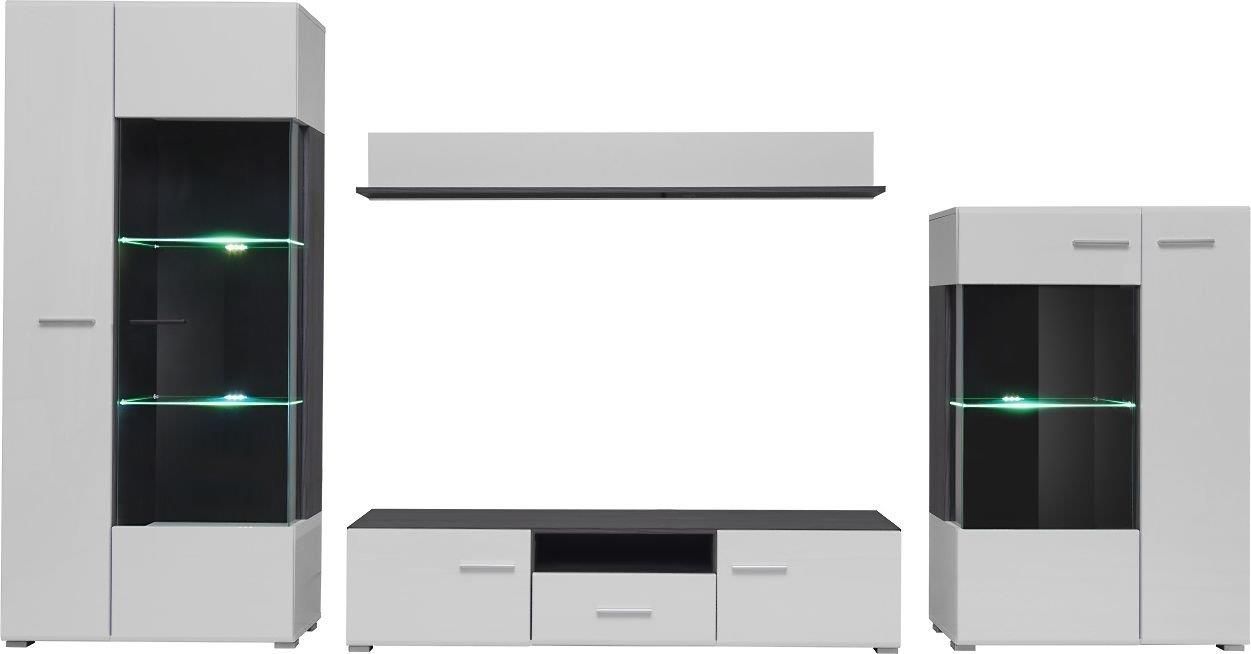 Furnival Meblościanka Solido Biała/Sosna Norweska Czarna Z Podświetleniem Led 7547540 Maszewo