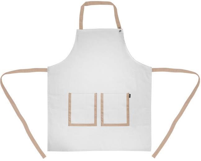 Guzzini - Fartuch- mleczny/biały Fartuch z wyjątkowo długim wiązaniem w talii, który pasuje do każdego szefa kuchni. Co więcej, pasek na szyję można również regulować za pomocą 5 zatrzasków, aby zapewnić odpowiednią długość dla każdego. Fartuch ma dwie bardzo duże kieszenie z przodu, które pomieszczą różne przedmioty, od przyborów kuchennych, takich jak obieraczka do ziemniaków lub otwieracz do puszek, po przedmioty, które chcesz mieć zawsze przy sobie, takie jak smartfon, który będzie chroniony np. przed zachlapaniem.Dostępne są trzy wersje kolorystyczne: mleczna biel z piaskowymi wykończeniami, taupe i granat z szarymi wykończeniami. Wymiary: 70x85 cmMateriał: 100% Naturalna bawełna (180 GSM)
