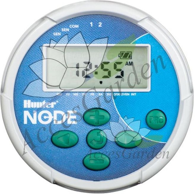 Sterownik bateryjny NODEGodny zaufania sterownik bateryjny, który rozwiąże twoje problemy z brakiem zasilania.Przeznaczony dla terenów odizolowanych, z ograniczonym dostępem do zasilania.Łatwe połączenie Node z cewką zaworu bez potrzeby używania dodatkowych śrub i kabli. Solidna i wodoszczelna konstrukcja urządzenia zapewnia sprawne działanie w surowym środowisku. Umieszczony w studzience z zaworami Node zasilany jest przez jedną lub dwie baterie 9V, które zapewniają sprawne działanie przez rok lub 2 lata. Dzięki ekranowi LCD Node jest bardzo łatwy do zaprogramowania. Solidna konstrukcja i łatwa obsługa sterownika Node czyni go najlepszym sterownikiem bateryjnym na rynku.Modele NODE-100 sterownik 1 sekcyjny NODE-200 sterownik 2 sekcyjny NODE-400 sterownik 4 sekcyjny NODE-600 sterownik 6 sekcyjny Funkcje i korzyści Standardowe programowanie sterownika Hunter - łatwy w programowaniu tak jak każdy inny sterownik oferowany prze Hunter Obsługa do 6 elektrozaworów w zależności od sterownika jaki wybierzemy W pełni wodoszczelny i zanurzalny do 3,5 metrów Długa żywotność baterii - działa z jedną lub dwoma bateriami 9V po to aby przedłużyć działanie Kompatybilny z czujnikiem Hunter Rain Clik - wyłączenie nawadniania podczas wystąpienia opadów Kompatybilny z zaworem głównym - możliwość operowania zaworem głównym w modelach 2,4,6 sekcyjnych Ustawienia sezonowe (10% - 150%) - pozwalają na szybkie zmiany czasów nawadniania w skali procentowej Programowanie - 3 programy i 4 czasy startu na każdy program Maksymalny czas działania 6 godzin Wskaźnik zużycia baterii Funkcja obejścia czujnika deszczu Cykl ręczny Okres gwarancji; 2 lata