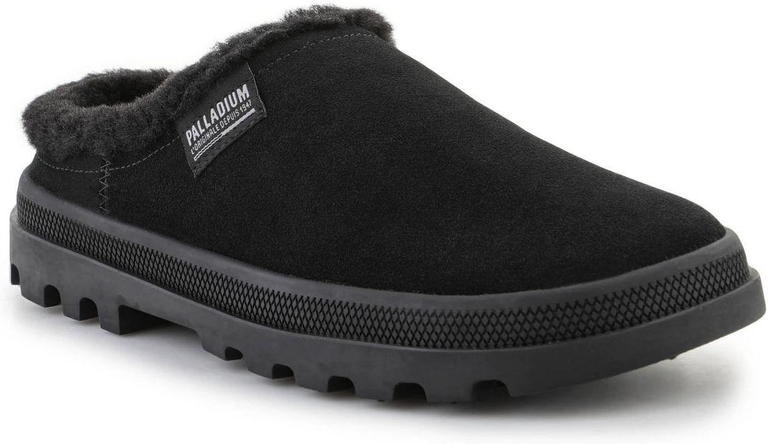 Palladium Palladune Mule Warm 74337-008-M Black Właściwości Palladium Palladune Mule Warm 74337-008-M w kolorze czarnym to świetna propozycja na jesień i zimę. Te mule są zaprojektowane z myślą o maksymalnym komforcie dzięki ciepłej wyściółce, która idealnie nadaje się na chłodne dni. Wsuwany styl ułatwia szybkie zakładanie i zdejmowanie, a gumowa podeszwa zapewnia dobrą przyczepność i trwałość. Dzięki klasycznemu czarnemu kolorowi i prostemu designowi, te mule doskonale pasują do każdej codziennej stylizacji.