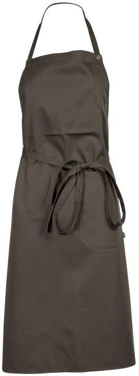Fartuch kuchenny LOTI mokka ROBUR Fartuch kucharski Robur Loti w kolorze brązowym, wykonany z wysokiej jakości polibawełny zapewniającej komfort użytkowania oraz ochronę przed zabrudzeniami przez cały dzień pracy. Dla komfortu pracowników kuchni fartuch został wyposażony w regulowany pasek na zatrzaski. Cechy produktu: tkanina: polibawełna 195-215 g/m2 (65% poliester, 35% bawełna) pasek na szyję z możliwością regulacji, na zatrzaski wiązanie w pasie i jedna kieszeń na biodrze Długość paska - 110 cm, Wysokość - 90 cm, Szerokość - 70 cm.