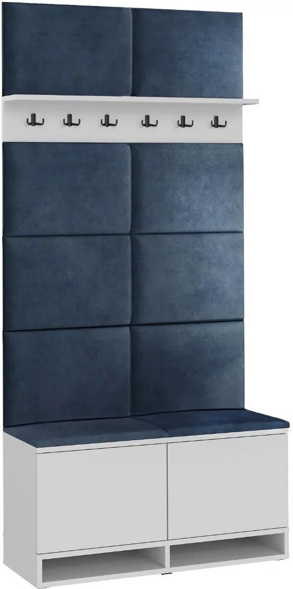 Pojemna szafka na buty z siedziskiem i wieszakami DUBAI biała/granatowa