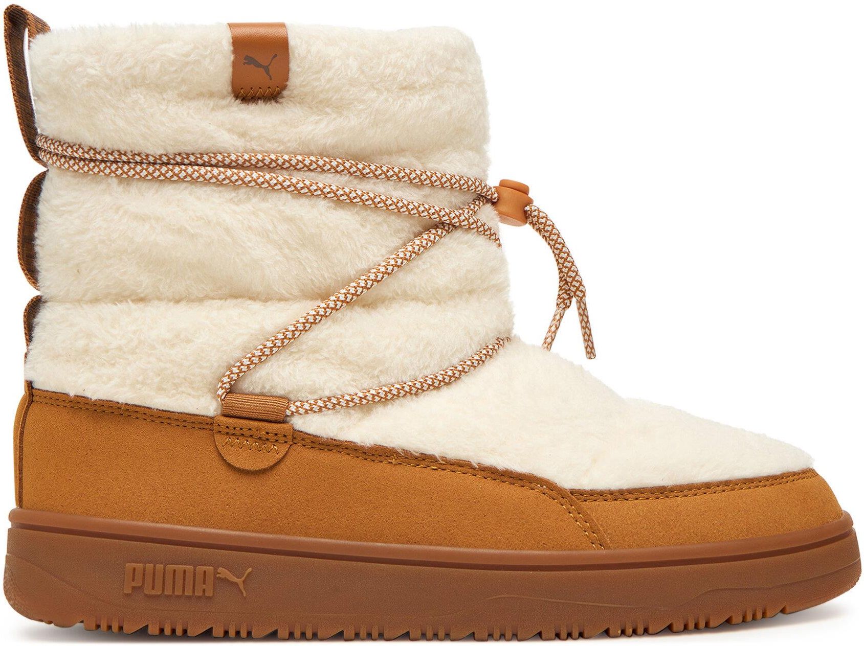 PUMA BUTY SNOWBAE 40217502 r 40,5 Śniegowce Snowbae marki Puma to stylowe śniegowce, które zapewnią Ci komfort i ochronę w zimowe dni – bez kompromisów w kwestii wyglądu. Pikowana cholewka wykończona futerkiem dodaje elegancji i ciepła, a solidna gumowa podeszwa oraz ochronny otok chronią przed …