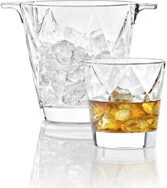 Vidivi - Zestaw do drinków 6+1 Concerto Zestaw do drinków zawierający 6 niskich szklanek oraz pojemnika, który doskonale sprawdzi się jako kubełek na kostki lodu lub dodatki do drinków. Na całej powierzchni naczyń widnieje romboidalny wzór subtelnie wytłaczany na szkle. Wzór składa się z powtarzających się rombów o różnych rozmiarach, ułożonych w taki sposób, aby tworzyły regularne układy geometryczne. Romby stykają się i tworzą ciekawe kompozycje, tworząc dynamiczny i trójwymiarowy efekt, wprowadzając refleksy świetlne. Wyprodukowane we Włoszech z bardzo wytrzymałego szkła - High Definition charakteryzującego się również nieskazitelną przejrzystością. Wyroby ze szkła High Definition zachowują swoją przezroczystość nawet podczas mycia w zmywarce (do 3000 cykli). Wymiary pojemnika: średnica: 15 cm wysokość: 15 cm Wymiary szklanek: pojemność: 370 ml średnica: 9,4 cm wysokość: 9,5 cm