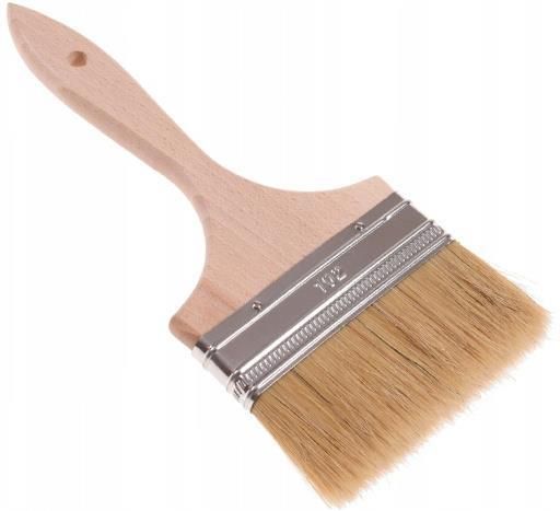 Pędzel angielski 102 mm Pędzle angielskie (płaskie); najlepiej nadają się do malowania większych powierzchni. Używa się ich do szybkoschnących i dobrze rozprowadzających się lakierów, nadają się także do rozprowadzania farb wodorozcieńczalnych i lakierów dyspersyjnych. Stosowane są trzonki z drewna surowego i lakierowanego. Produkowane są w różnych rozmiarach (w numeracji calowej i milimetrowej). uchwyt drewniany, metalowa skuwka włosie naturalne- przeznaczony do farb olejnych, lakierów, emulsji