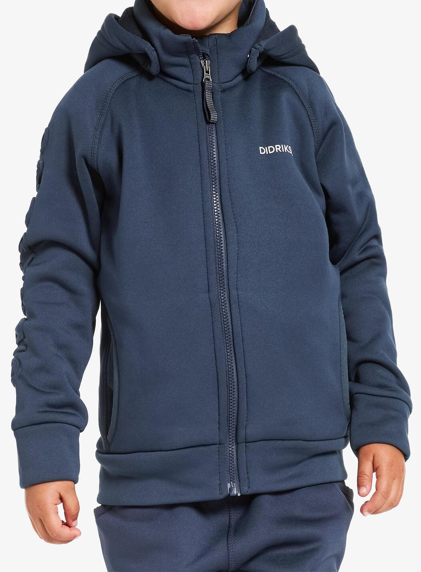 Bluza dziecięca Didriksons Corin Full Zip - navy to izolujący od chłodu model do noszenia na co dzień. Bluza zapinana jest suwakiem na całej długości, który wykończony został patką zabezpieczającą podbródek. Bluza dziecięca Didriksons Corin Full Zip - navy to model wyposażony w dwie kieszenie boczne oraz elastycznie wykończone mankiety i dół. Funkcjonalność bluzy podnosi kaptur z możliwością odpięcia. Krój Regular zapewnia komfort noszenia odzieży zarówno w roli warstwy wierzchniej, jak i pośredniej. Bluza Didriksons Corin Full Zip - navy - najważniejsze cechy:Model z suwakiem na całej długości;Zamek z ochroną podbródka;Krój Regular;Odpinany kaptur;Dwie kieszenie boczne;Elastyczne mankiety i dół.