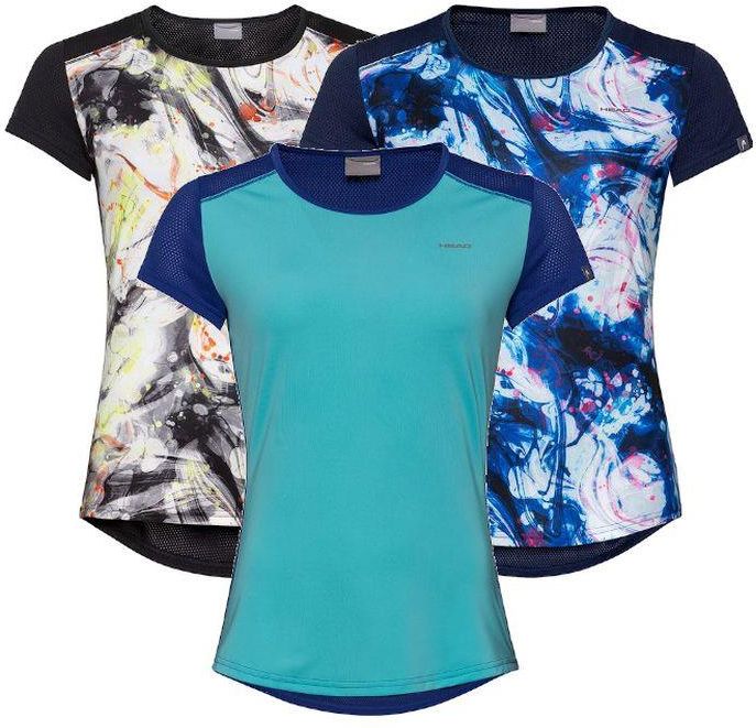 Damska koszulka sportowa Head Sammy Women - lekki, przewiewny tshirt idealny do treningów w cieplejsze dni. Koszulka o regularnym, kobiecym kroju świetnie dopasowuje się do kształtu sylwetki. Uszyta z lekkiego poliestru, który znakomicie "oddycha" oraz utrzymuje wilgoć z dala od ciała. Dodatkowo materiał jest łatwy w praniu i szybkoschnący. Płaskie szwy nie uwierają i chronią przed otarciami i podrażnieniami skóry. Tył z trykotowej siateczki dla lepszej oddychalności. Dwie wersje kolorystyczne posiadają kontrastową grafikę. Kolor: czarny, granatowy, niebieski, Materiał: 85% poliester, 15% elatyna,