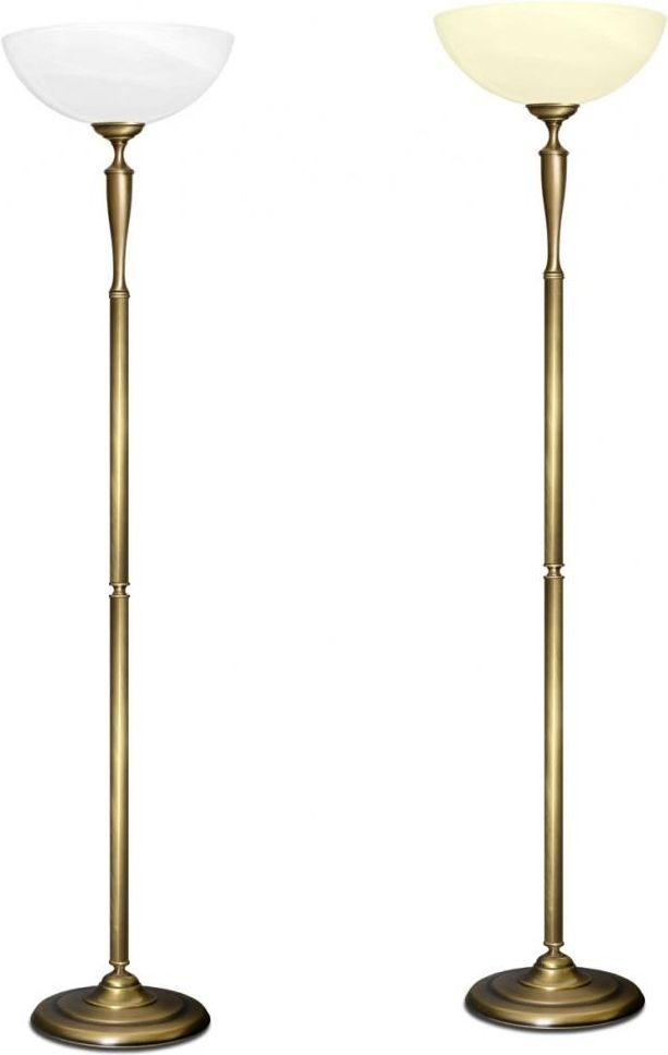 Klasyczna lampa podłogowa wykonana z mosiądzu. - Wykonana w całości z elementów z pełnego mosiądzu. - Wykończenie: złota patyna. - Zawiera włoski ozdobny odlew mosiężny. - Klosz szklany do wyboru: biały ‘alabaster’ lub ecru ‘alabaster’ (albo na zamówienie ecru gładki w zależności od dostępności). - Wymiary całkowite: wysokość 175cm (lub na zamówienie), średnica klosza 35cm. - W podstawie lampy umieszczony jest odważnik zapewniający jej stabilność.- Włącznik nożny na przewodzie zasilającym (przewód w kolorze lampy wyprowadzony jest z boku podstawy). - Żródło światła: 1xE27 (żarówka tradycyjna/żarowa o mocy max. 60W) lub żarówka energooszczędna albo LED o większej mocy (np. odpowiednik 100W). Lampa jest fabrycznie nowa, wyprodukowana w Polsce. Gwarancja: 24 miesiące. UWAGA! Lampy podłogowe dla pewności i bezpieczeństwa od lat wysyłamy na minipaletach, jak zawsze za 0zł: SZCZEGÓŁY. Seria P - zobacz wszystkie lampy