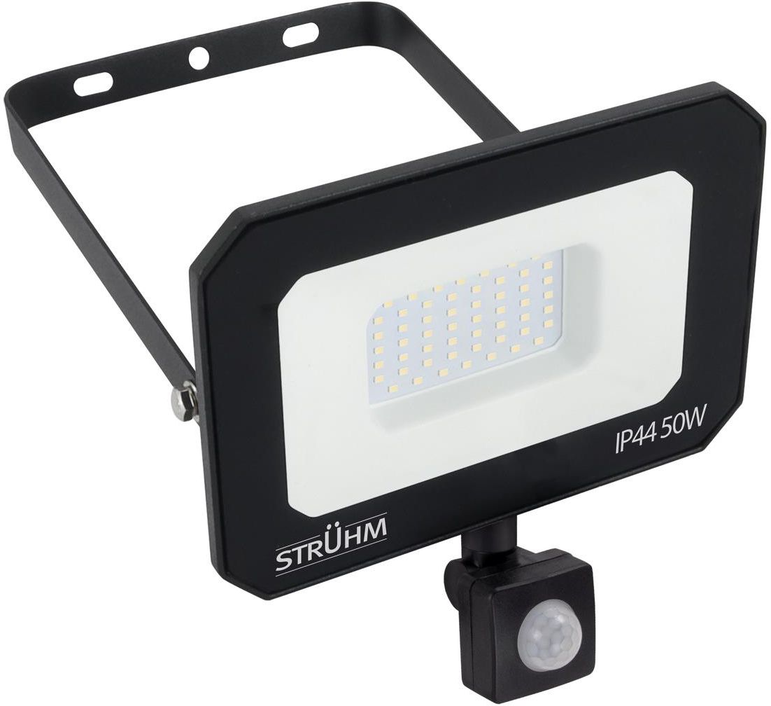 STRUHM Naświetlacz LED z czujnikiem PIR ASTON 50W 104lm/W czarny barwa neut Stopień szczelności: IP44 Barwa światła: 4200 K (naturalna) Gwarancja: 2 lata Strumień świetlny: 5180 lm Skuteczność świetlna: 104 lm/W Napięcie Wej.: 230 V Materiał obudowy: Aluminium Materiał klosza: PC poliwęglan Kąt …
